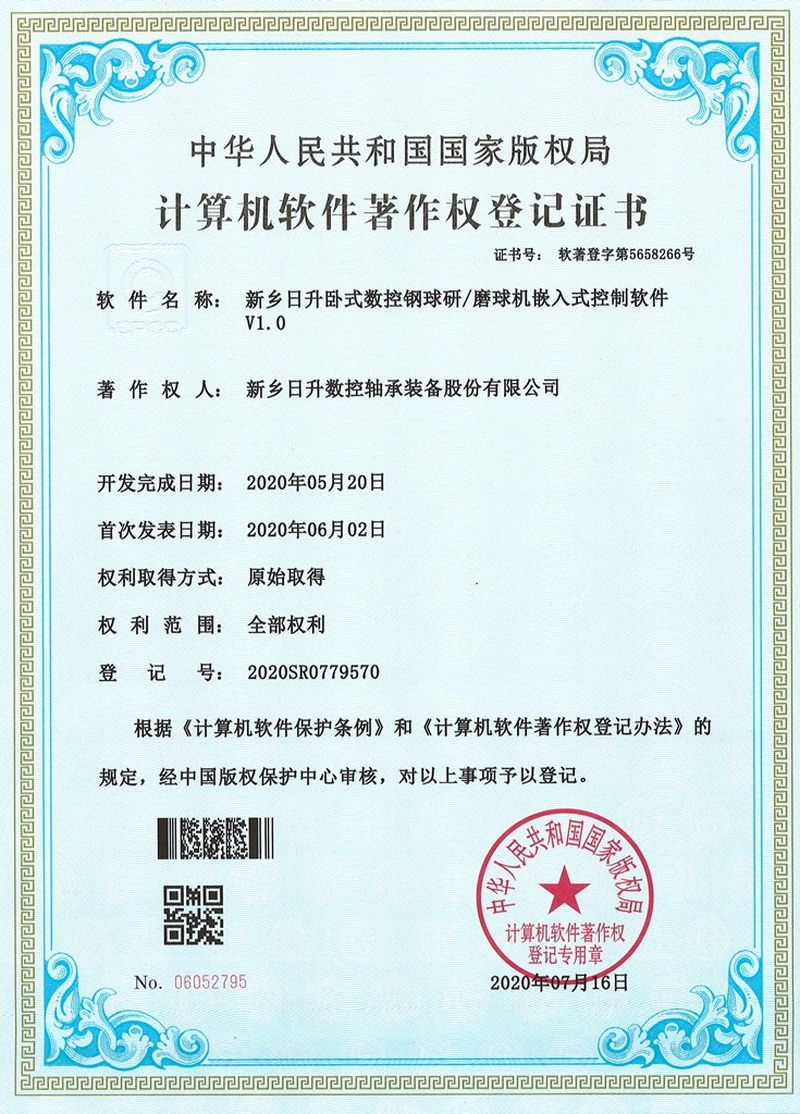 (發(fā)布時(shí)間:2020-07-27 點(diǎn)擊:4407)近日,我公司的“新鄉(xiāng)日升臥式數(shù)控鋼球研/磨球機(jī)嵌入式控制軟件 V1.0”獲得國(guó)家版權(quán)局“計(jì)算機(jī)軟件著作權(quán)登記”。至此,公司共有17項(xiàng)計(jì)算機(jī)軟件著作權(quán)在國(guó)家版權(quán)局登記。