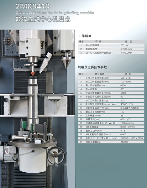 本機床主要對軸類零件兩端的中心孔進行磨削加工,特別是大中心孔軸類零件(如機床主軸),保證兩端中心孔的同軸度,提供中心孔的精度。